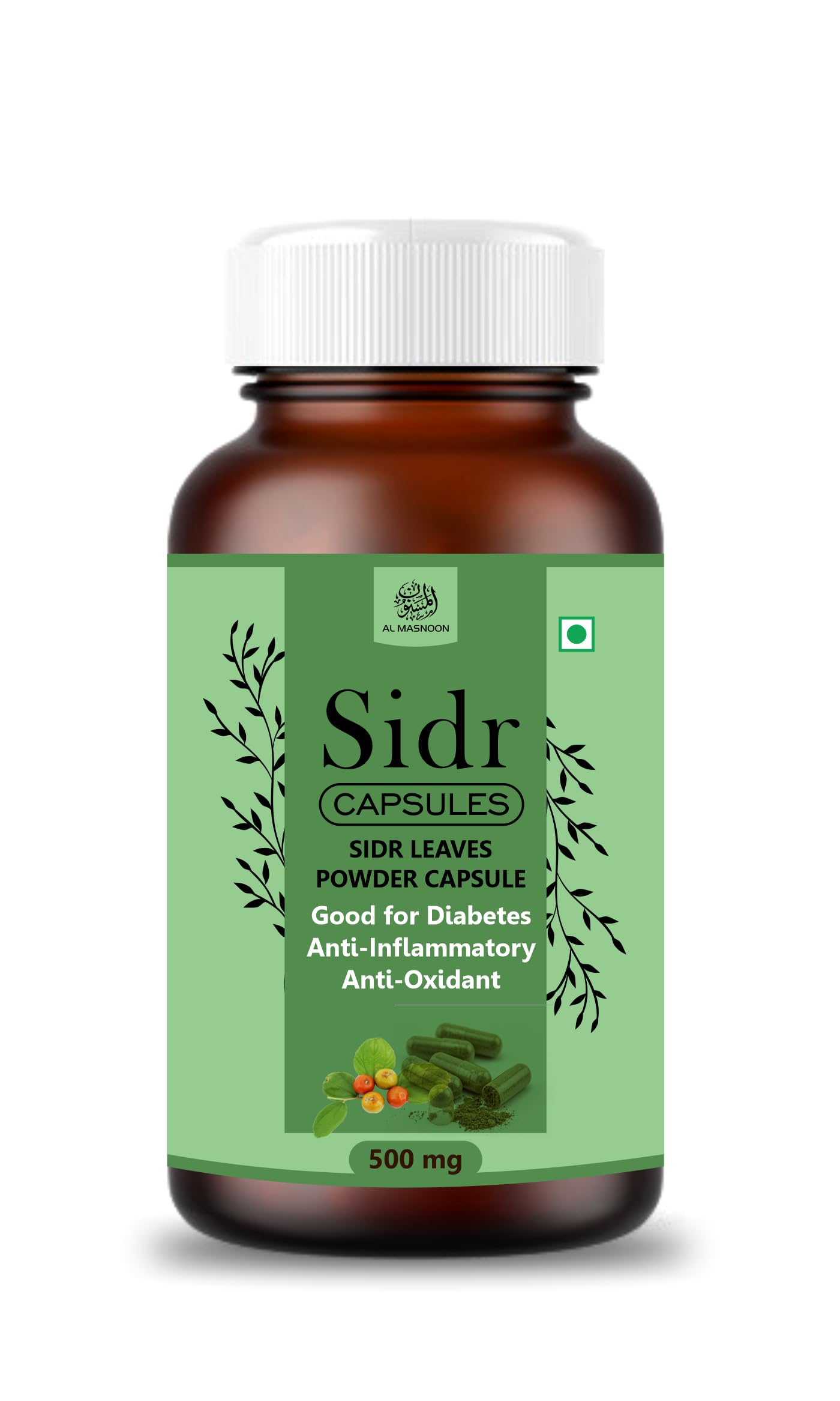 AL MASNOON Sidr Caps. 500mg are made of 100% natural sidr/ beri leaves powder . 100% & chemical free .
