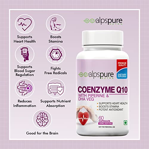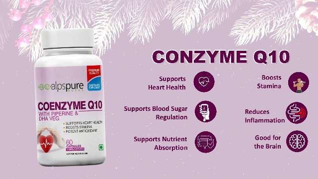 Supports Heart Health: Alpspure coenzyme helps improve cardiovascular function and maintains a healthy heart.Boosts Stamina: Coenzyme helps boost stamina and promotes energy.Serves As a Potent Antioxidant: Coenzyme produces energy which is required for overall growth and maintenance of the body. It acts as a powerful antioxidant that protects the cells from harmful molecules.Improves Skin Health: Our coenzyme promotes healthy skin. It contains all the minerals and vitamins which are required to achieve healthy and glowing skin.; Promotes Healthy Aging: Coenzyme helps slow down the aging process. It helps to rejuvenate skin tissues, purify blood, and promote general wellness