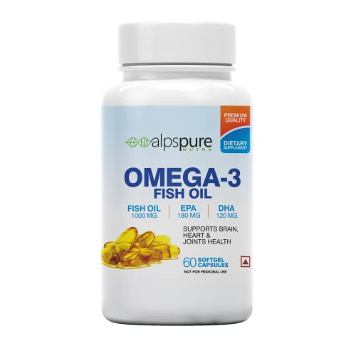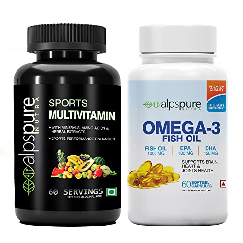 Alpspure Nutra Combo Sports Multivitamin 60 Tablets & Omega 3 Fish Oil 1000 mg 60 Softgel Capsules (180 EPA & 120 DHA) | Supports Healthy Heart & Joints | Sports Performance Enhancer with Amino acids