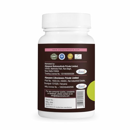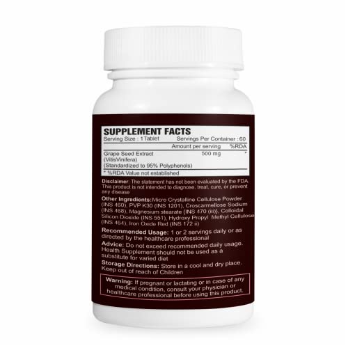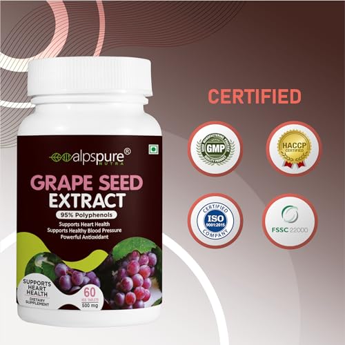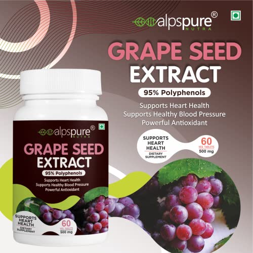 Alpspure Nutra Grape Seed Extract Tablets 500 mg | Supports Heart Health | Supports Healthy Blood Pressure | Powerful Antioxidant Supplement | 60 Tablets (Pack of-1)