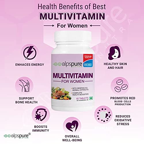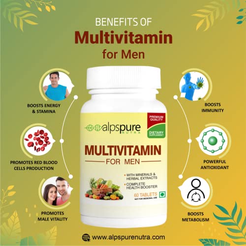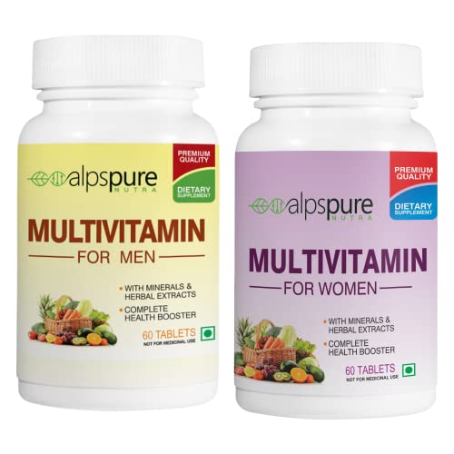 Alpspure Nutra Multivitamin Men 60 Tablets & Multivitamin Women 60 Tablets Boosts Energy, Stamina & Immunity | Complete Health Booster with Clinically Researched Ingredients (Combo)