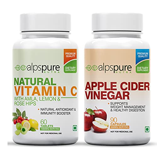 Alpspure Nutra Natural Vitamin C 60 Tablets & Apple Cider Vinegar 90 Capsules, Immunity Booster, Weight Management (Combo)