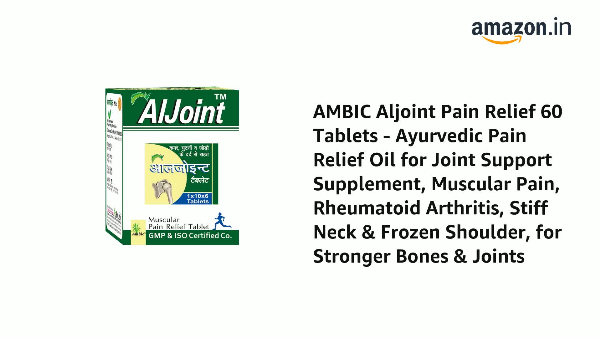 AMBIC Aljoint Pain Relief 60 Tablets - Ayurvedic Pain Relief Oil for Joint Support Supplement, Muscular Pain, Rheumatoid Arthritis, Stiff Neck & Frozen Shoulder, for Stronger Bones & Joints