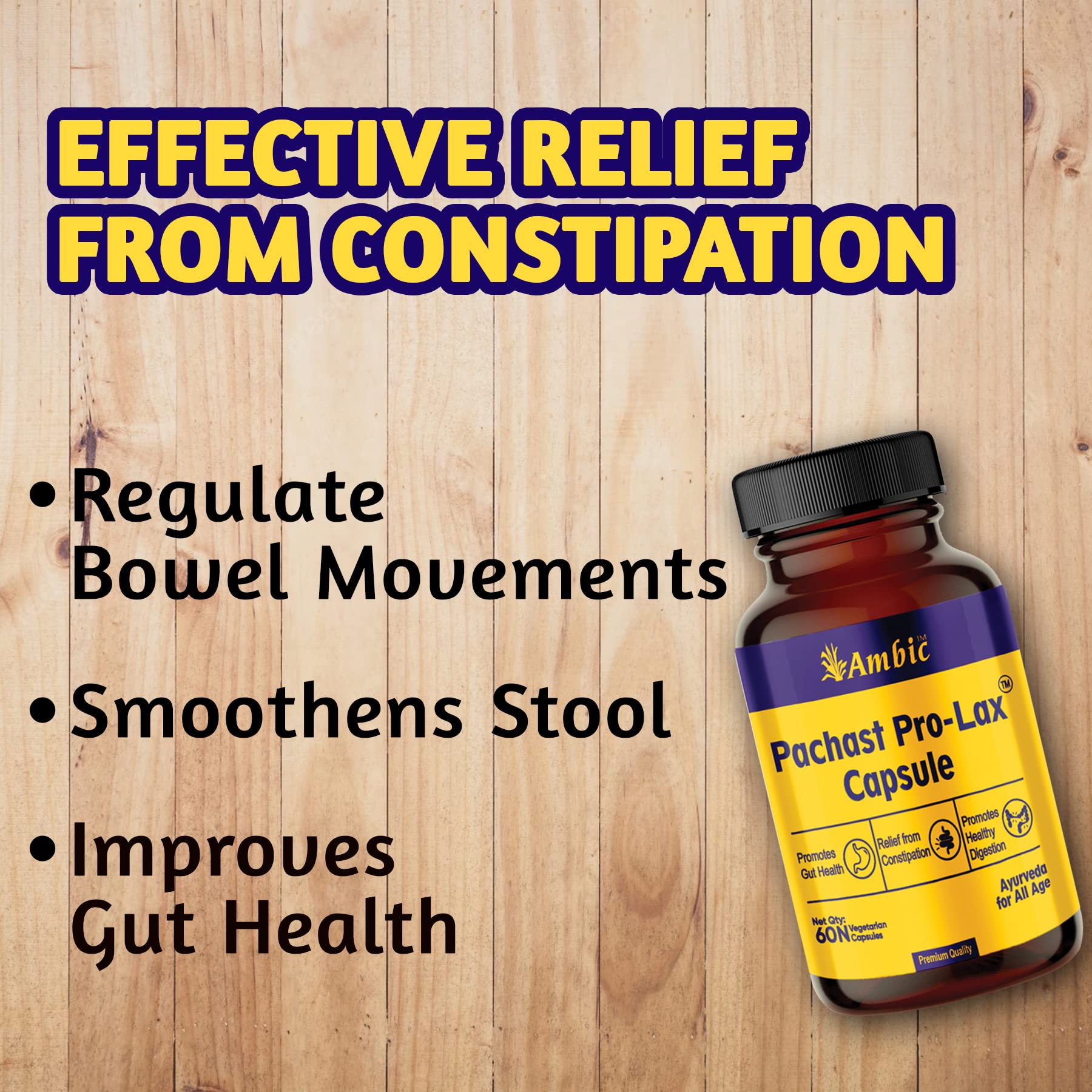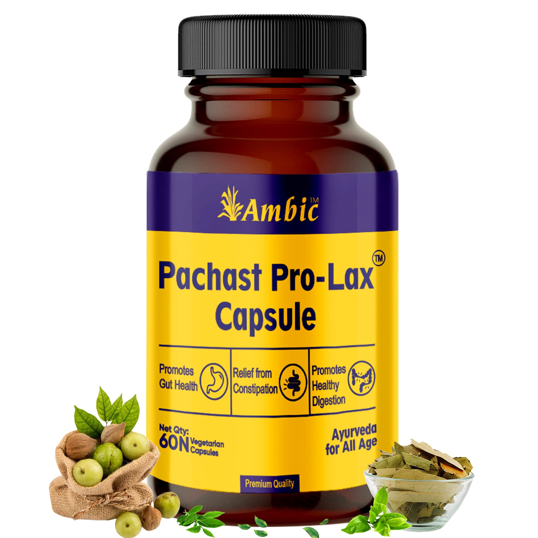 AMBIC PACHAST Pro-Lax Constipation Relief Medicine - 60 Capsule Veg for Acidity Relief Bloating and Gas Relief Indigestion Relief Boost Gut Health Digestive Enzymes by Triphala Powder