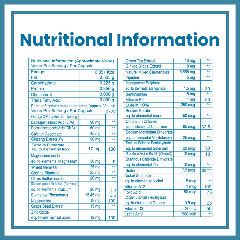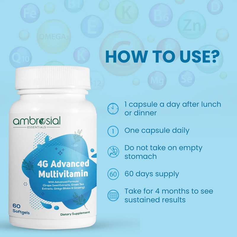 4G ADVANCED Multivitamin Tablets for Men and Women come with 45 Active Vitamins & Minerals that have been carefully selected to support you on a daily basis.