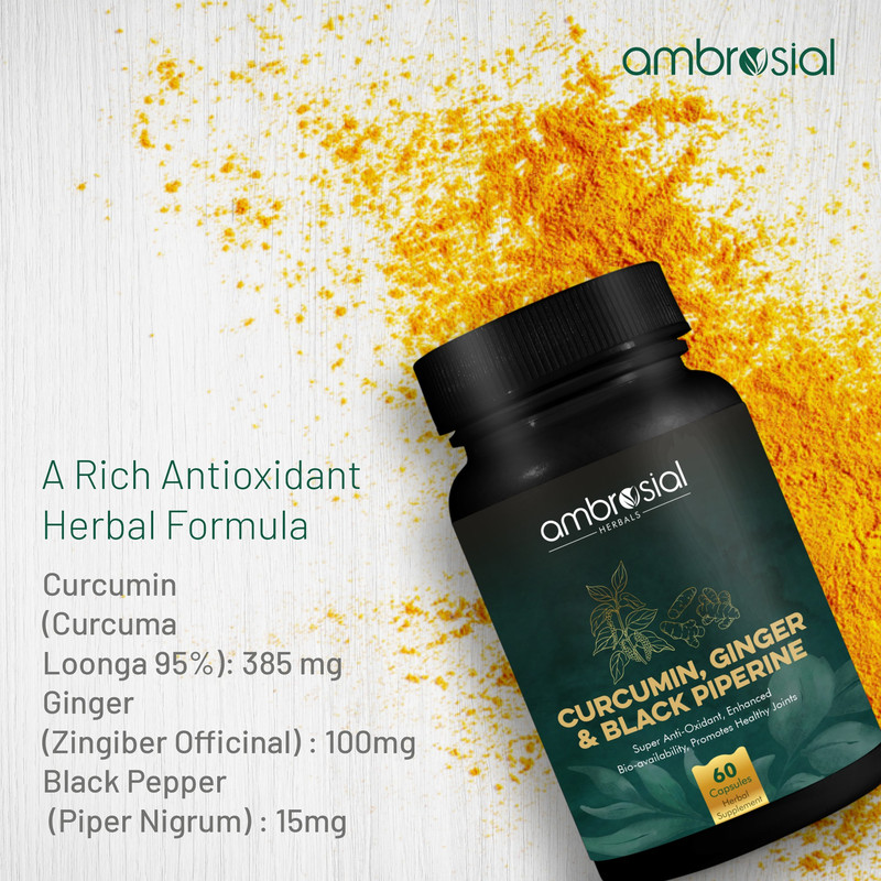 Ambrosial Curcumin capsules with Ginger & Black pepper 60 High Strength 95% Curcumin Extract Supplem