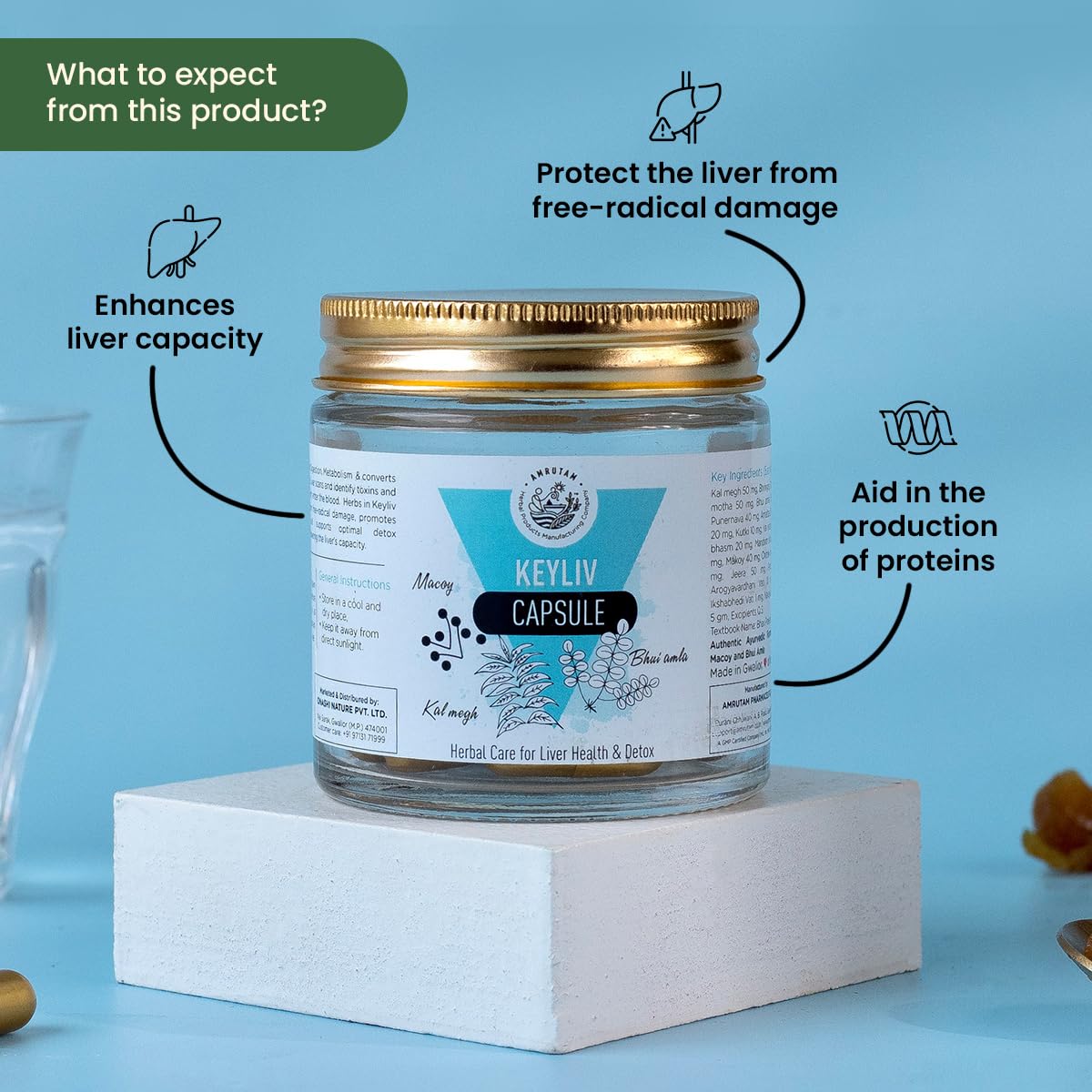 Discover the power of Ayurveda with Keyliv Capsules a natural and potent formulation designed to support liver health and detoxification. Enriched with a blend of traditional Ayurvedic herbs like Kal megh Bhringraj Triphala and more these capsules are expertly crafted to promote optimal liver function. Kal megh and Bhringraj are known for their liver-supporting properties while Triphala aids in digestion and detoxification. With the goodness of these natural ingredients Keyliv Capsules offer a trusted and effective solution to maintain a healthy liver. Embrace the time-tested wisdom of Ayurveda for your liver's well-being with Keyliv Capsules.