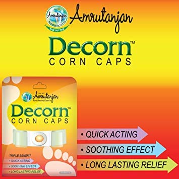 Amrutanjan Decorn corn caps are ayurvedic medicine for corn removal in the foot. It is quick-acting and comes in easy to use a bandage. Its soothing effect gives long-lasting relief. Its quick action helps in achieving soft feet and removes corn effectively. It is completely natural, safe to use and has no side effects.