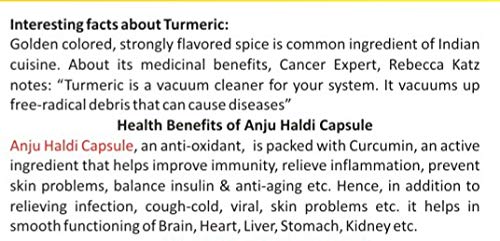 Anju Haldi Capsules Improve Immunity Relieve Inflammation Prevent Skin Problems | Balance Insulin & Anti-Aging Hence Cough-Cold Viral Skin Problems - (40 Capsule Pack)