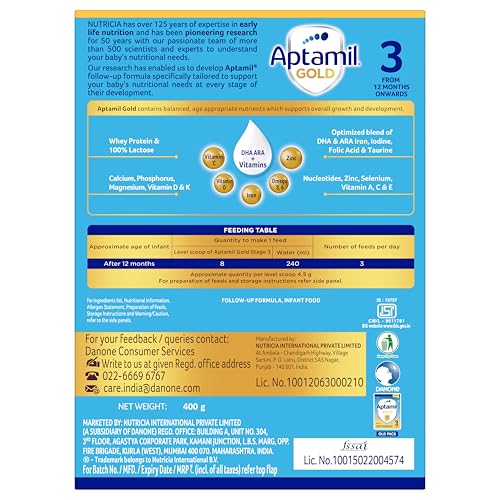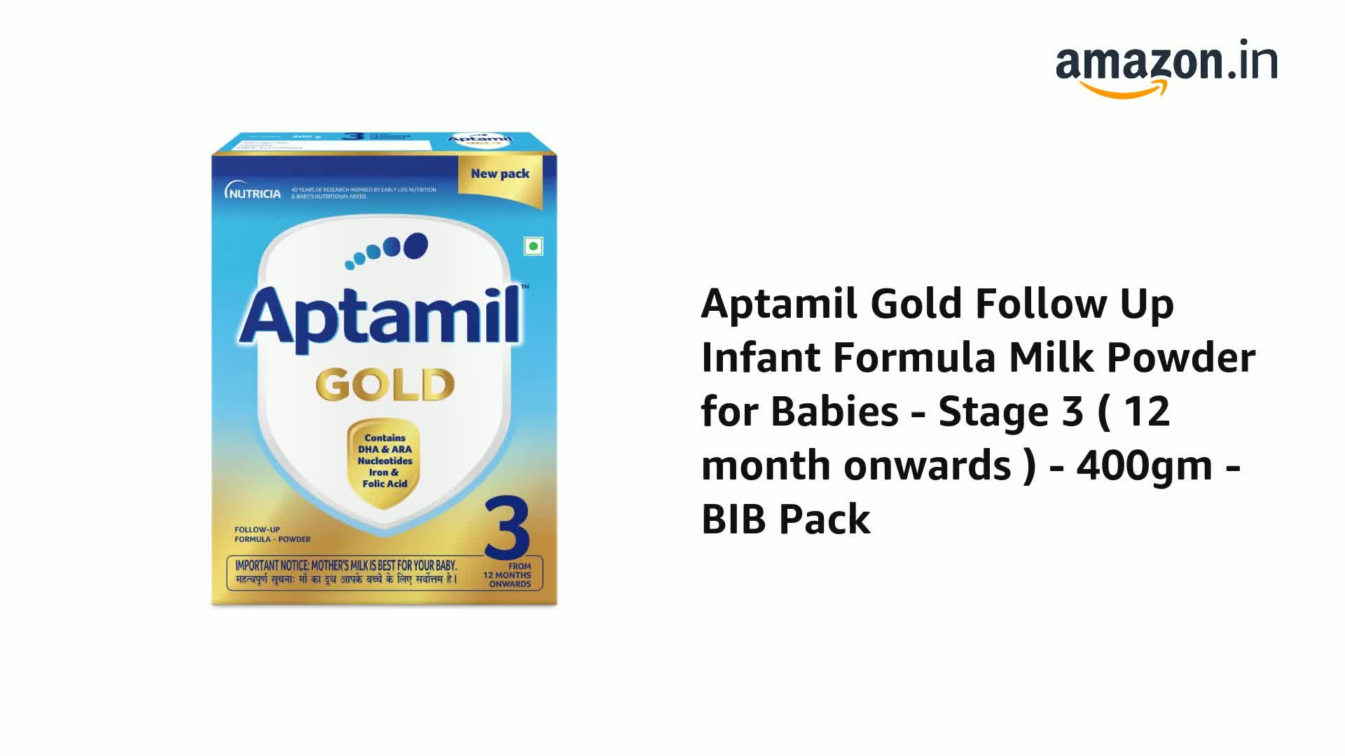 Aptamil Gold Follow Up Infant Formula Milk Powder for Babies - Stage 3 ( 12 month onwards ) - 400gm - BIB Pack