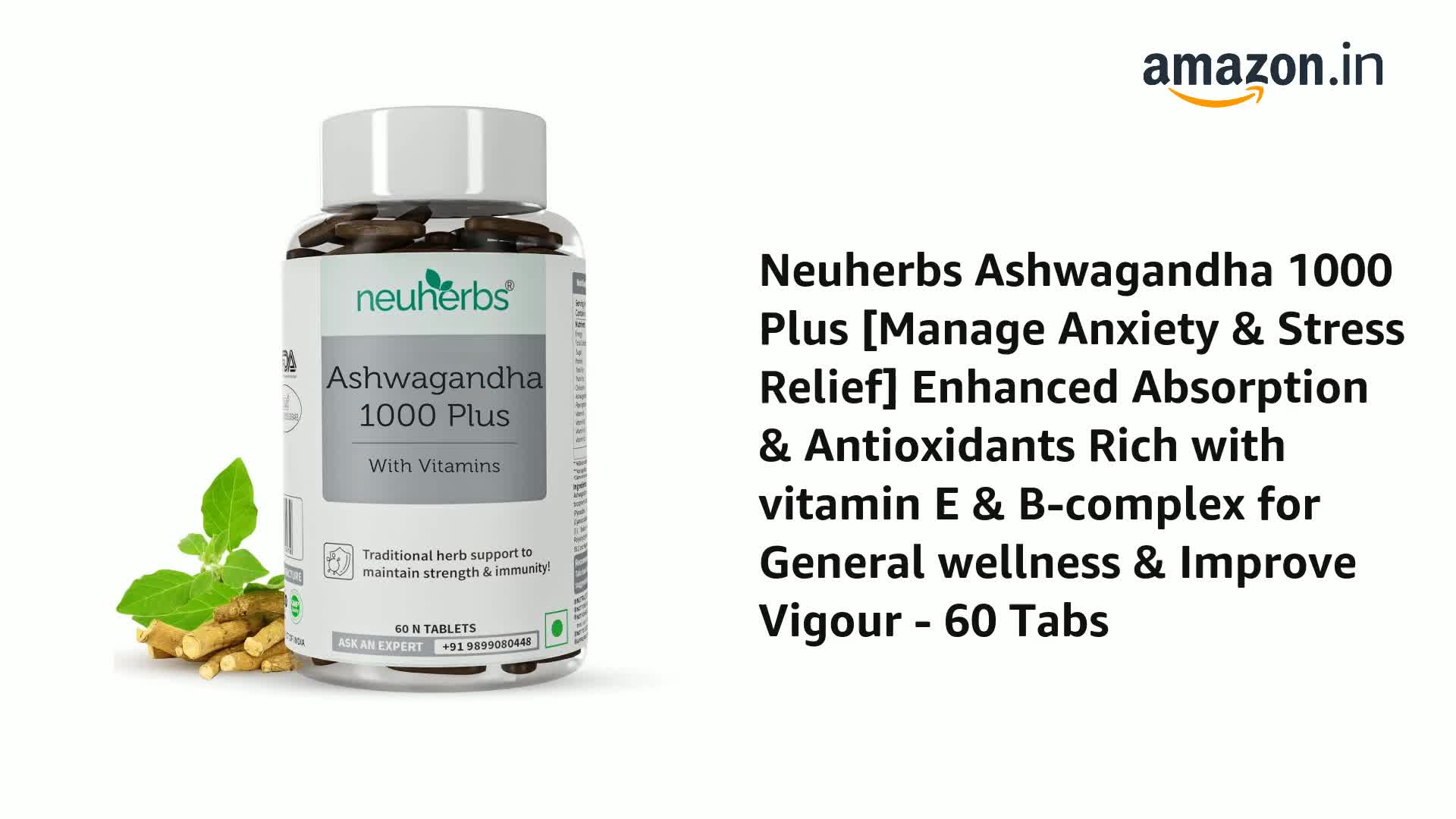 Neuherbs Ashwagandha 1000 Plus [Manage Anxiety & Stress Relief] Enhanced Absorption & Antioxidants Rich with vitamin E & B-complex for General wellness, Immunity Booster & Improve Vigour - 60 Tabs