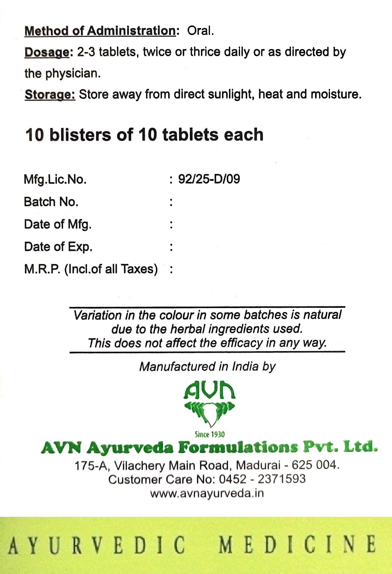 AVN Bruhatyadi Kashayam Tablets (Pack of 1) (100 Tablets)