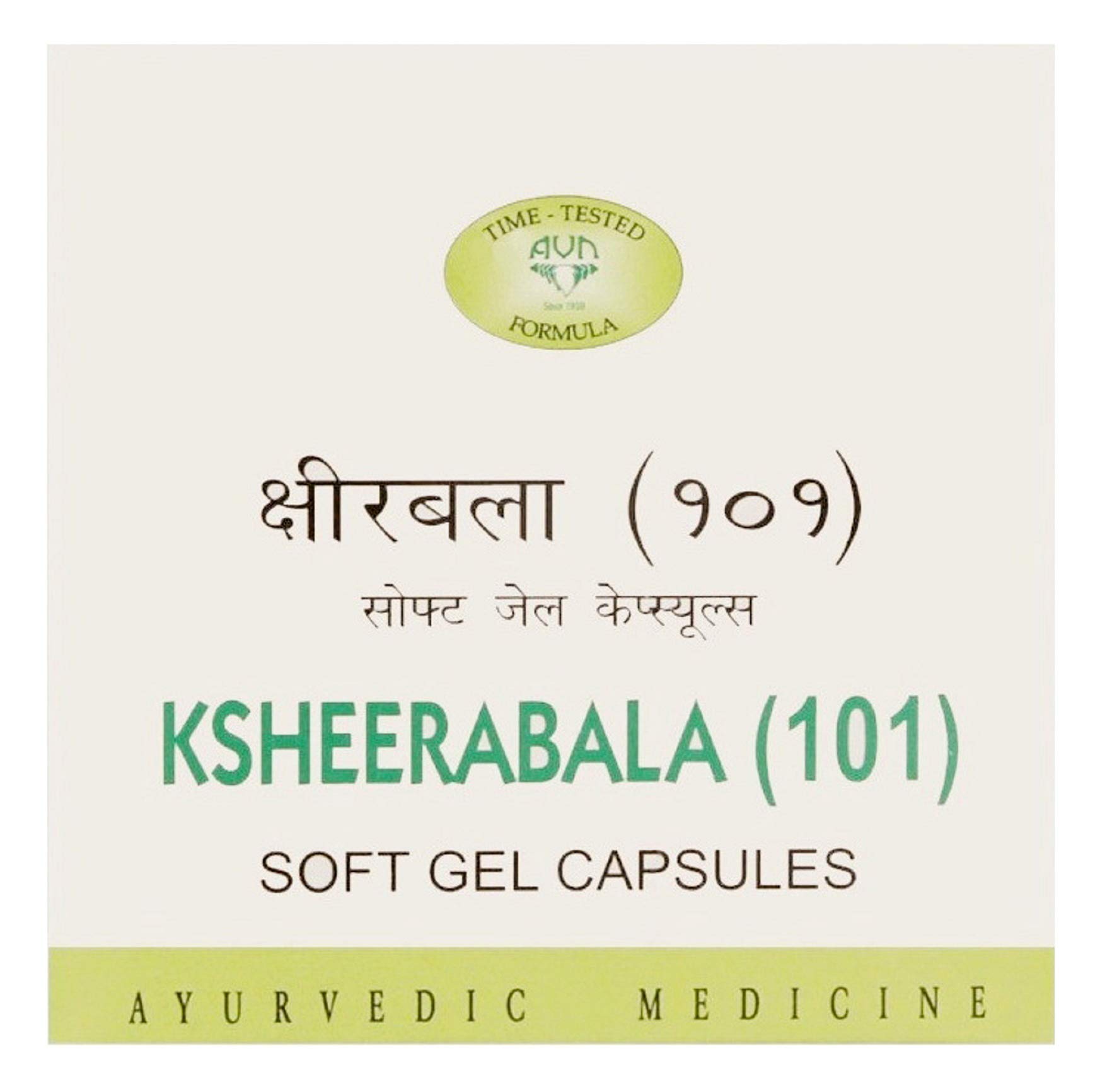 AVN Ksheerabala (101) Soft Gel Capsules. Its properties are emollient cooling strengthening anti-rheumatic nervine and analgesic. Traditionally used for arthritis numbness injuries insomnia and nervous disorders. Ksheerabala Capsules is a Nervine Tonic which can be used in many neurological disorders as well as in rheumatism and insomnia.