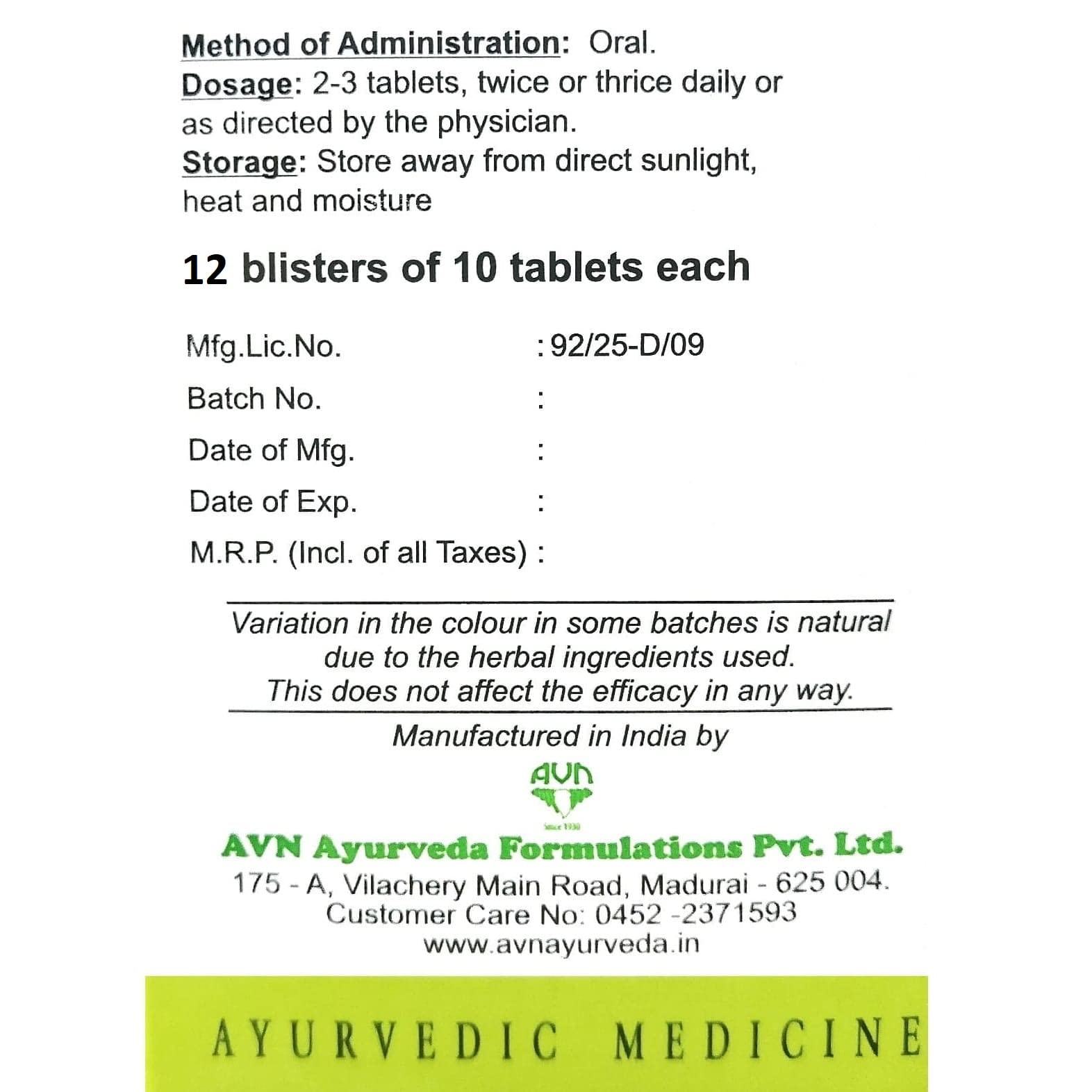 AVN LoMeduss Tablets.Dosage:2-3 Tablets twice or thrice daily or as directed by the physician.