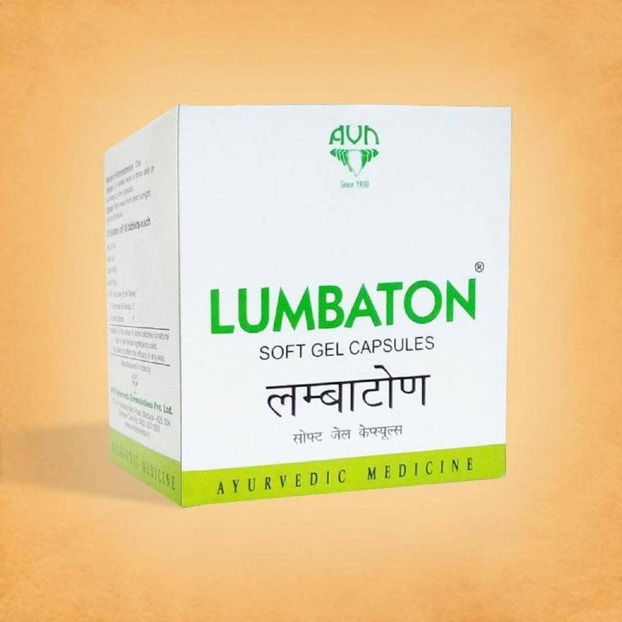 AVN Lumbaton Soft Gel Capsules (360 Capsules) (120 Capsules X 3). Indications: Lumbago Sciatica. Dosage: Curative: 2 Capsules 2-3 times daily after food; Preventive: 2 Capsules Once a day before food.