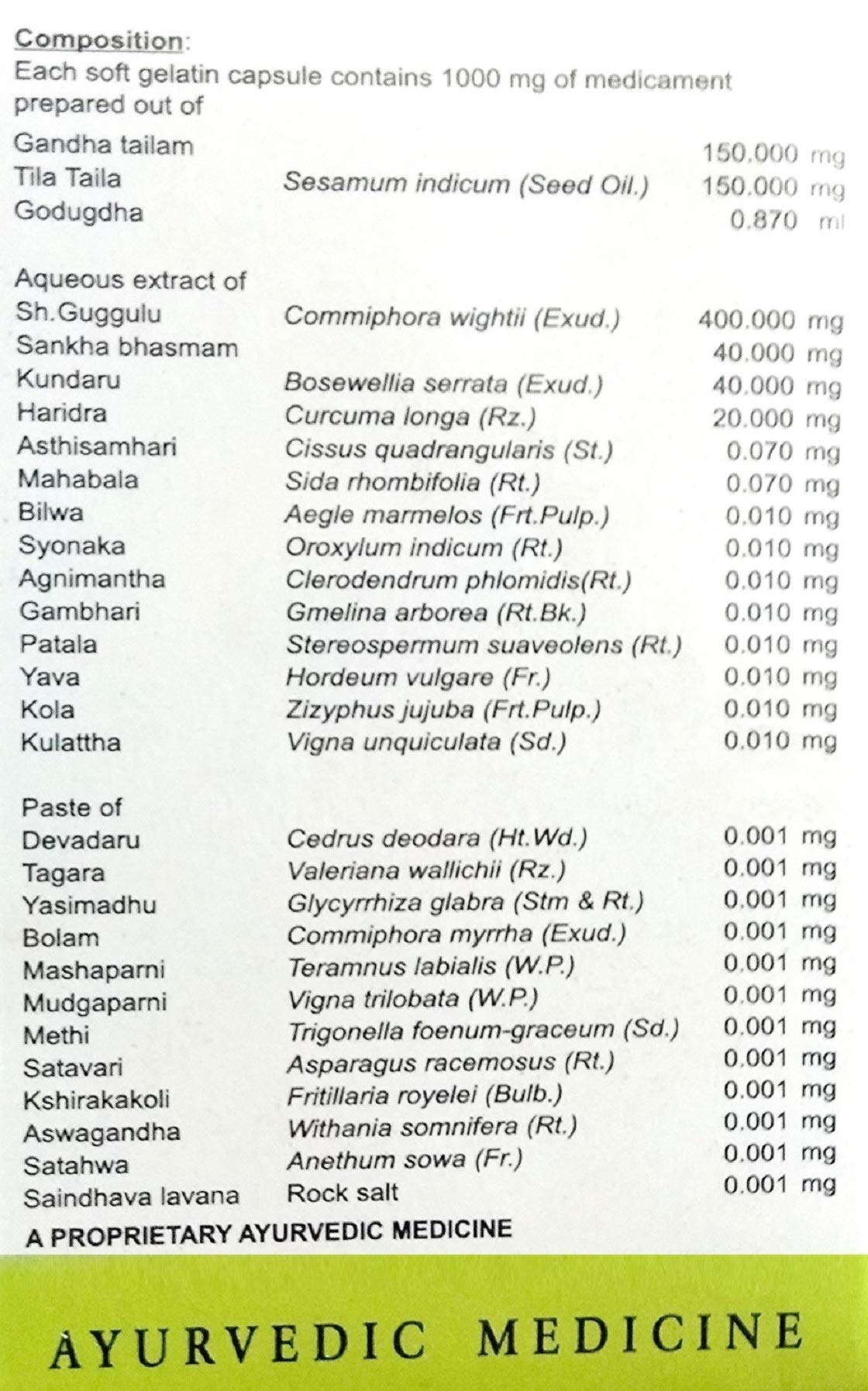 Indications: Associated symptoms with Osteo-arthritis degeneration of Cartilages Inflammation Pain Mobility.