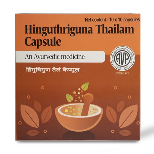 HomeHealth & PersonalDiet & NutritionHealth SupplementsAVP Hinguthriguna Thailam Capsule 100 Nos Formula to Support Easy Bowel Movements, Aids Relief in Abdominal Distention, Bloating and Acidity, Helps Reduce Stomach Pain, 3 Times Fortified Formulation