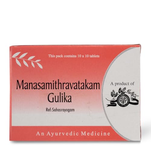 Manasamithravatakam tablet is a time tested classical formulation made with safe herbs and authentic ayurvedic products from the house of AVP. Manasamithravatakam is used for the Stress relief mainly focused on the mental health and focus. Tablet helps with reducing the anxiety and stress. Improves metabolic fucntions and rejuvinates the body tissue which promotes the mental acuity. Tablet is not tested on animals and it is cruelty free.