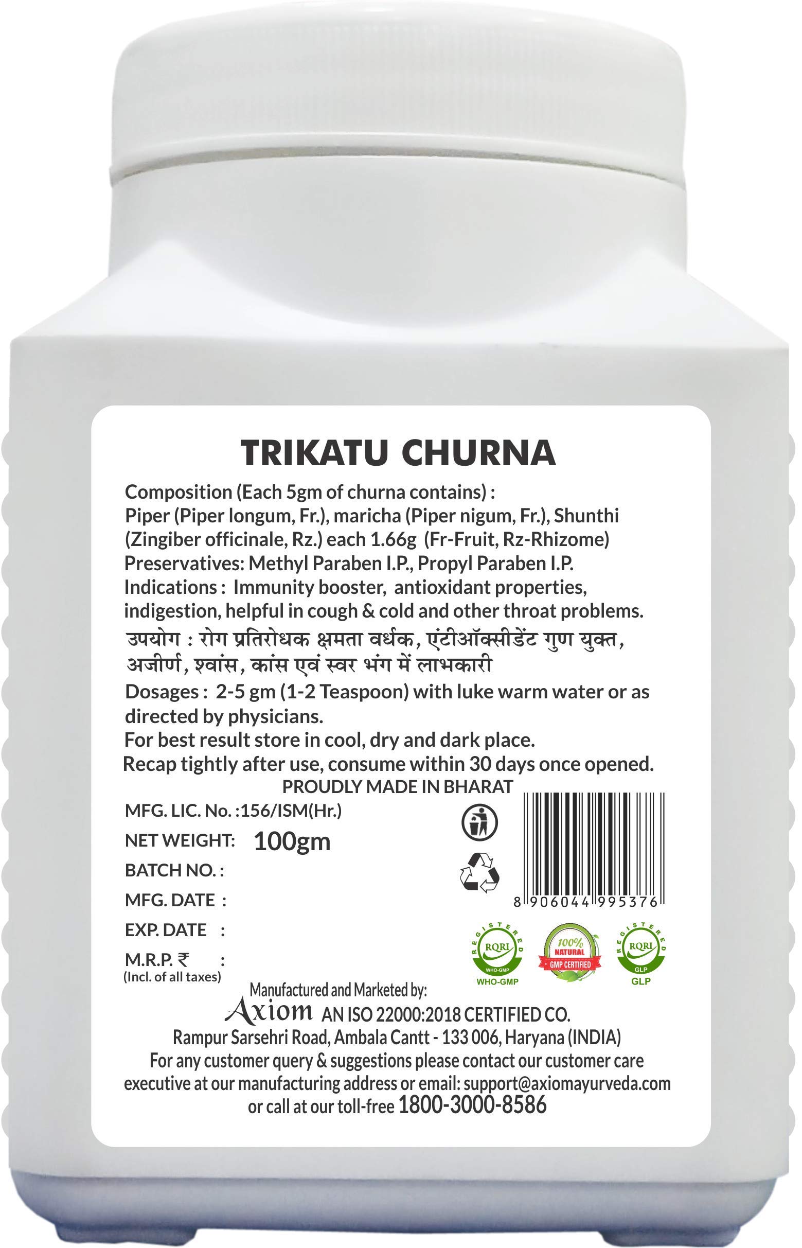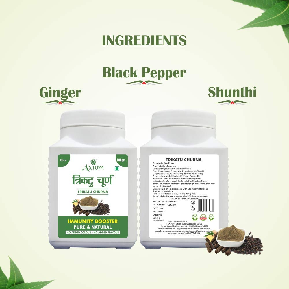 Axiom Trikatu Churna 100gm (Pack of 2) | Immunity Booster| Antioxidant Properties | Indigestion | Helps In Cough & Cold | 100% Natural WHO-GLP GMP Certified Product |