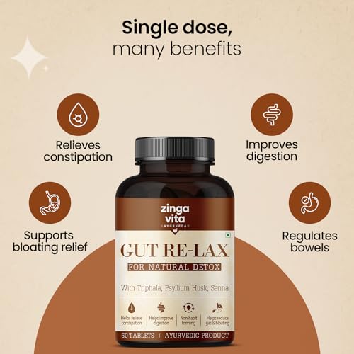 HomeHealth & PersonalDiet & NutritionHealth SupplementsAyurveda Gut Relax with Natural Probiotics for Gut Health | Helps Relieve constipation, Bloating & Acidity | Infused with Ayurvedic Herbs like Senna, Triphala, Psyllium Husk | 60 Veg Tablets