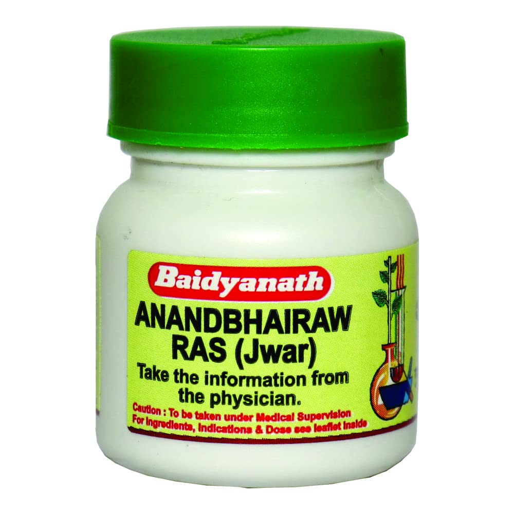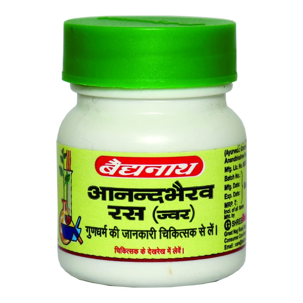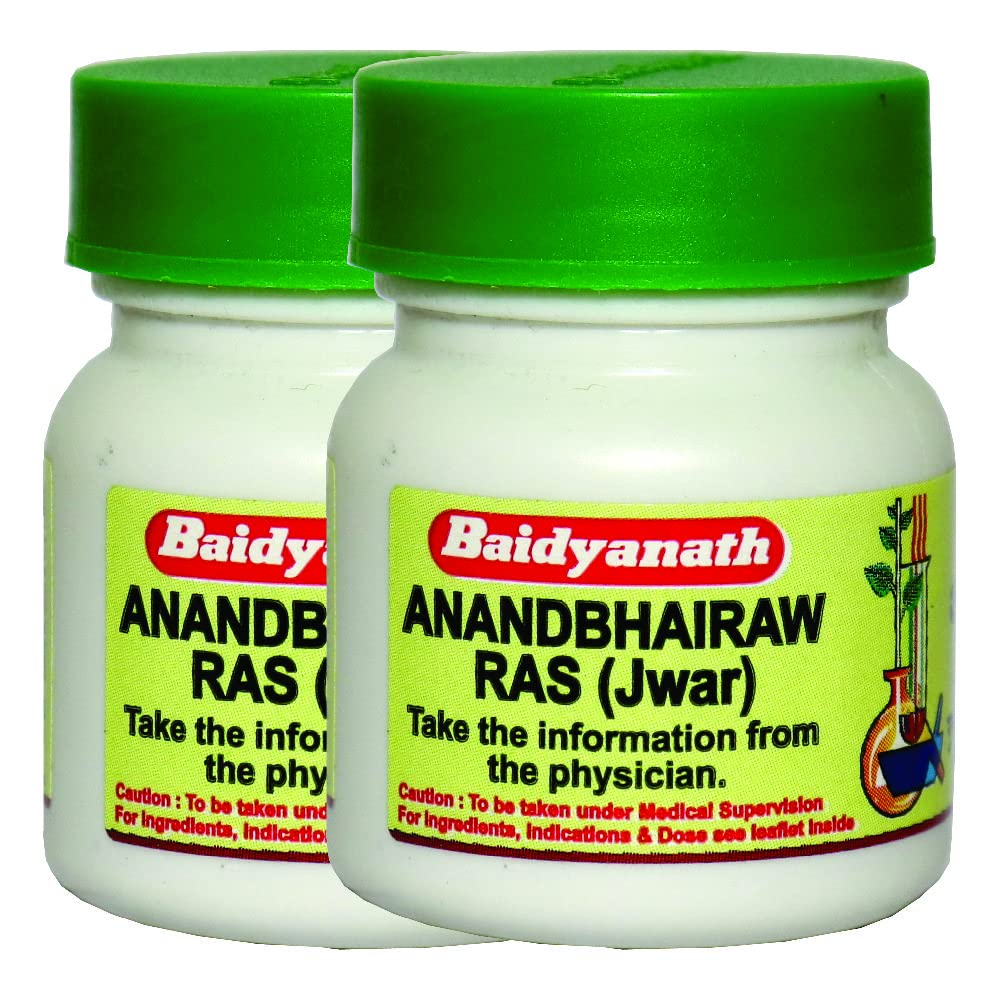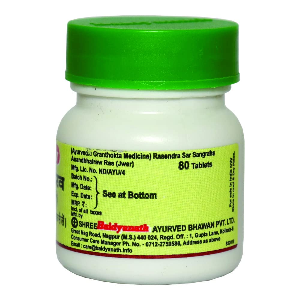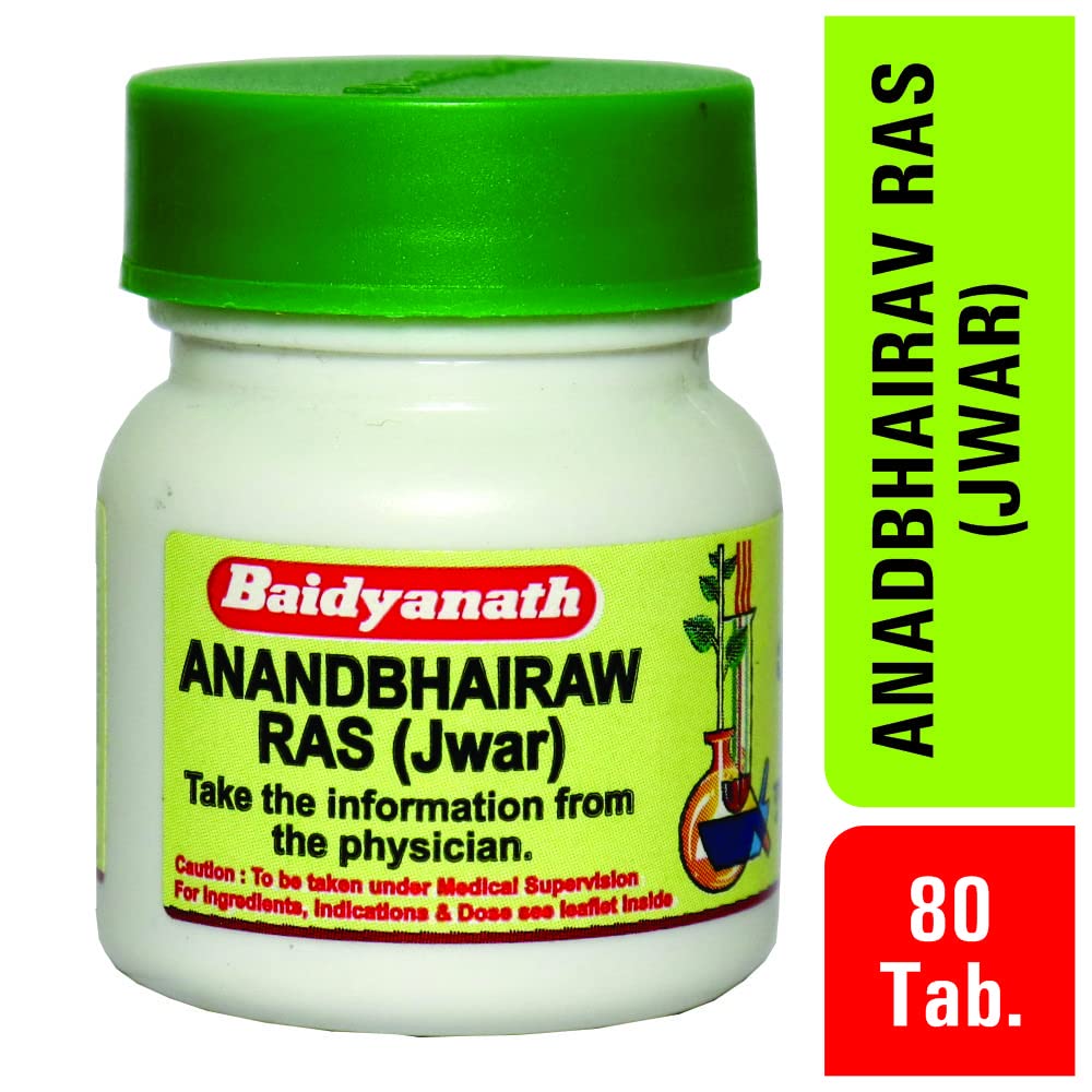 Baidyanath Anandbhairaw Ras Jwar-80 Tab (Pack Of 2). One of India;s most respected Companies Shree Baidyanath Ayurved Bhawan Pvt. Ltd. (Nagpur) popularly known as Baidyanath is the acknowledged leader of Ayurvedic know-how. Established in 1917 the Company has played a pioneering role in re-establishing ancient knowledge with modern research and manufacturing techniques. AYURVEDA is a 5000 year old Science of health care and herbal treatment. AYURVEDA is highly effective in common and complicated ailments assures long term relief and has no side effects. AYURVEDA is now backed by modern scientific research and technologies and provides its gentle healing touch to millions around the world.