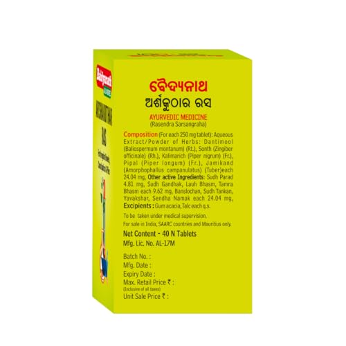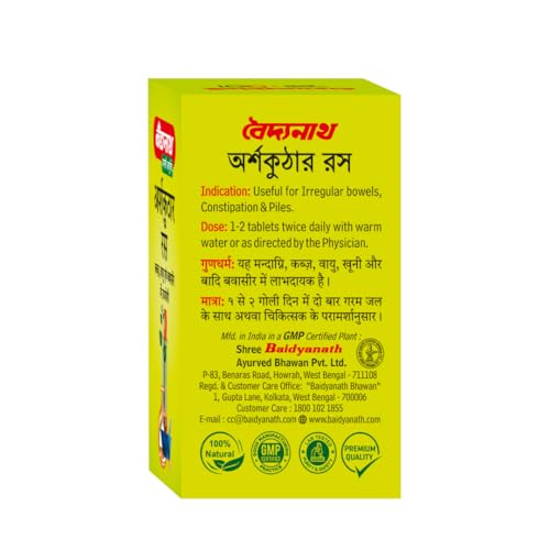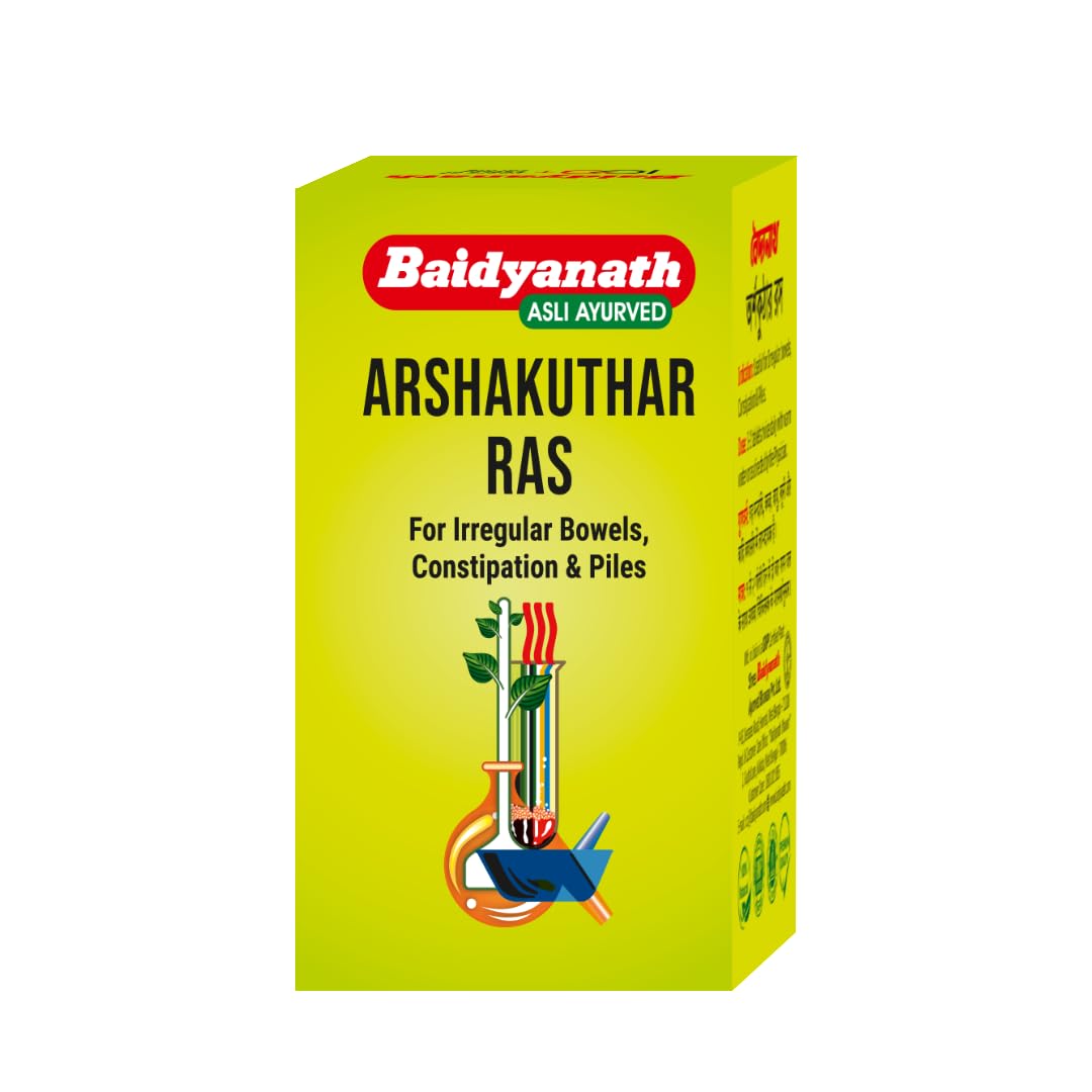 Baidyanath Arshakuthar Ras is an Ayurvedic formulation to combat irregular bowels conspitation and piles. Consume 1-2 tablets twice a day with warm water or as directed by Ayurvedic practitioner.