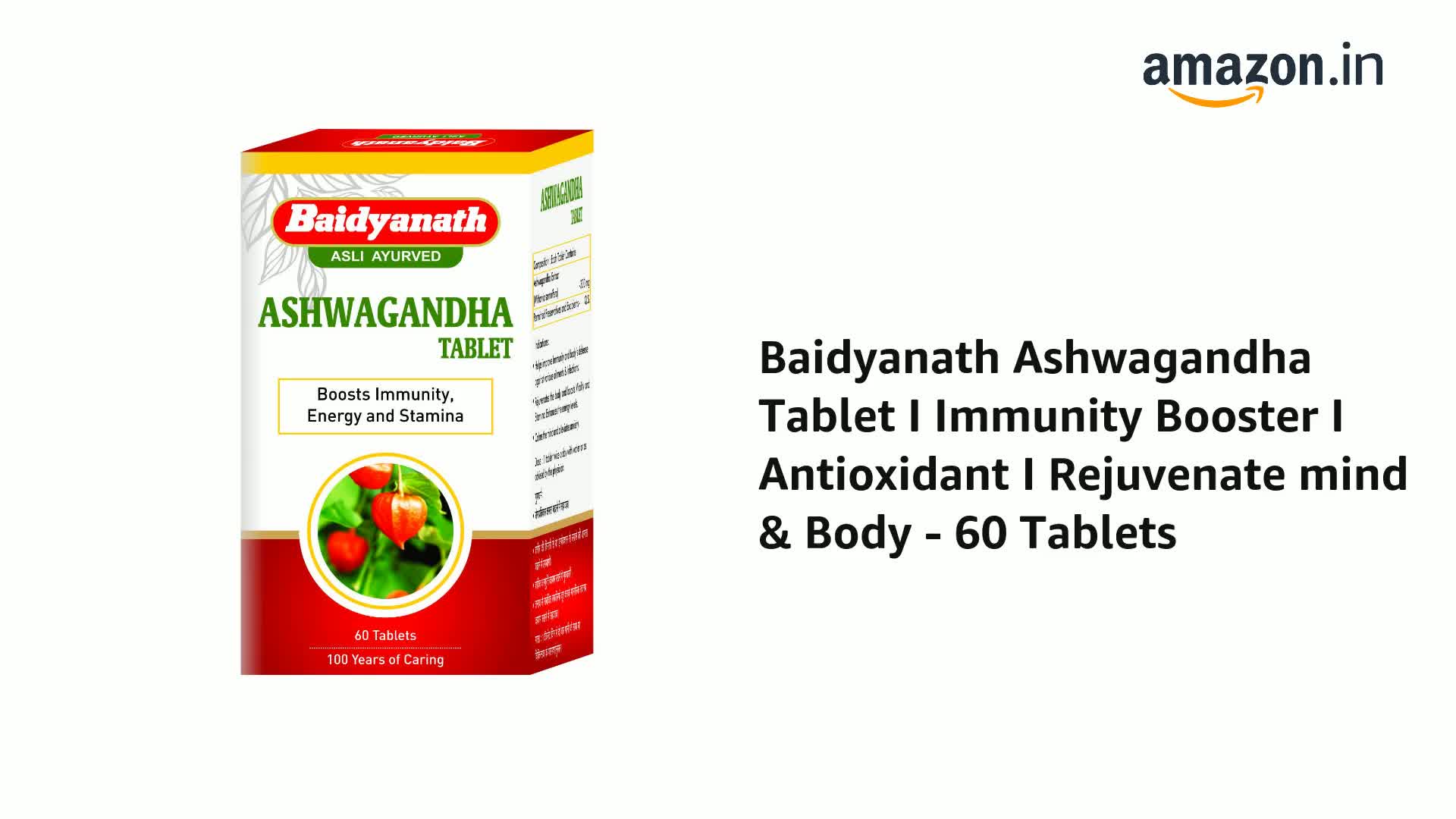 Baidyanath Ashwagandha Tablet I Immunity Booster I Antioxidant I Rejuvenate mind & Body - 60 Tablets
