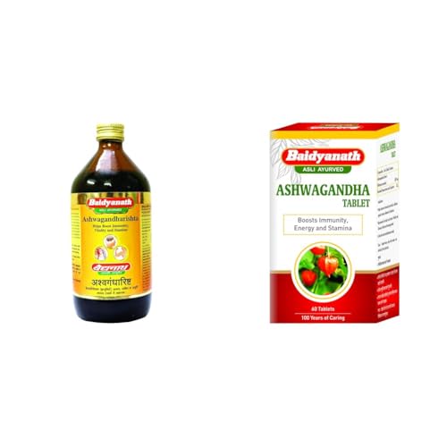 Baidyanath Asli Ayurved Ashwagandharishta | Helps Boost immunity - 450 ML & Baidyanath Asli Ayurved Ashwagandha Tablet | Immunity Booster | Antioxidant | Rejuvenate Mind & Body - 60 Tablets