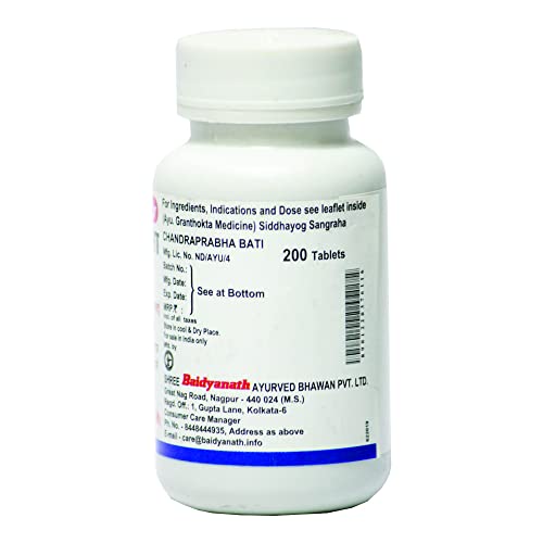 Baidyanath Chandraprabha Bati-200 Tab. One of Indias most respected Companies Shree Baidyanath Ayurved Bhawan Pvt. Ltd. (Nagpur) popularly known as Baidyanath is the acknowledged leader of Ayurvedic know-how. Established in 1917 the Company has played a pioneering role in re-establishing ancient knowledge with modern research and manufacturing techniques. AYURVEDA is a 5000 year old Science of health care and herbal treatment. AYURVEDA is highly effective in common and complicated ailments assures long term relief and has no side effects. AYURVEDA is now backed by modern scientific research and technologies and provides its gentle healing touch to millions around the world.