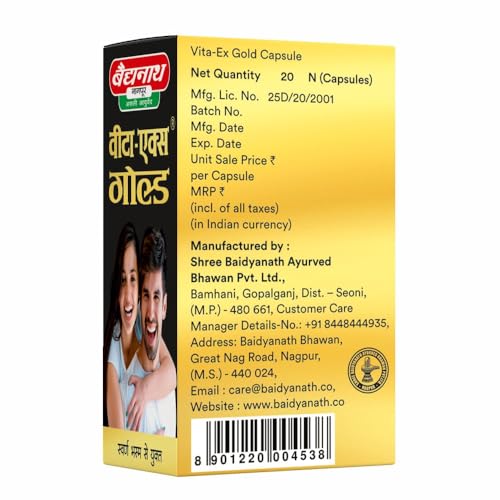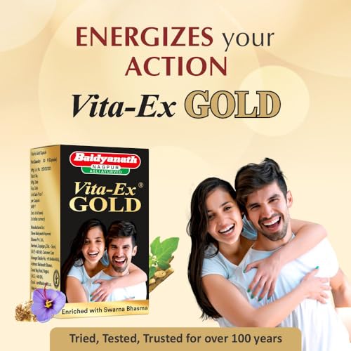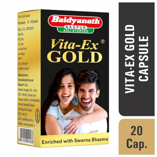 Baidyanath Vita-Ex Gold Plus is a unique formulation fortified with gold for sustained stamina and vitality. The capsules promote mens strength and activeness. It is a non-hormonal vitalizer cum tonic which helps restore energy vigor and stamina. Vita-Ex Gold Plus does not come with any diet restrictions.
