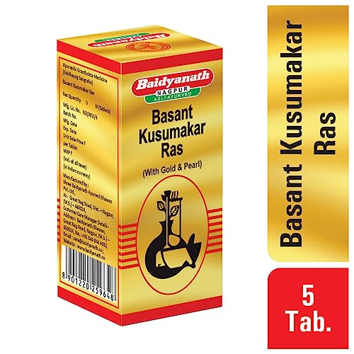 Baidyanath Vasant Kusumakar Ras (with Gold & Pearl) | Aids in Sugar Balance - 5 Tablets. One of Indiaâs most respected Companies Shree Baidyanath Ayurved Bhawan Pvt. Ltd. (Kolkata) popularly known as Baidyanath is the acknowledged leader of Ayurvedic know-how. Established in 1917 the Company has played a pioneering role in re-establishing ancient knowledge with modern research and manufacturing techniques. AYURVEDA is a 5000 year old Science of health care and herbal treatment. AYURVEDA is highly effective in common and complicated ailments assures long term relief and has no side effects. AYURVEDA is now backed by modern scientific research and technologies and provides its gentle healing touch to millions around the world.