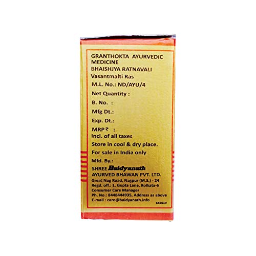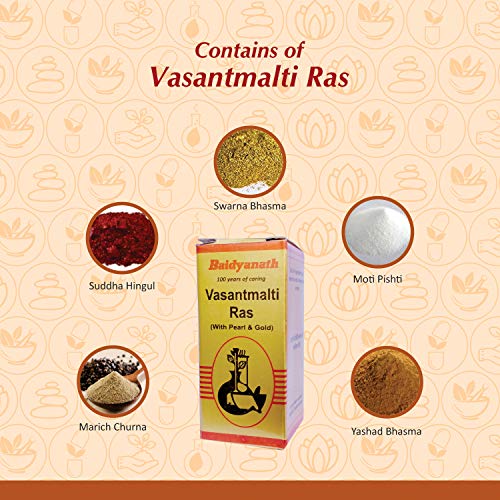 Baidyanath Vasant Malti Ras ( 10 Tablets ).Natural respiratory support that strengthens immunity and boosts energy. It is best used in the treatment of respiratory problems in adults. Take 1-2 tablets twice a day.