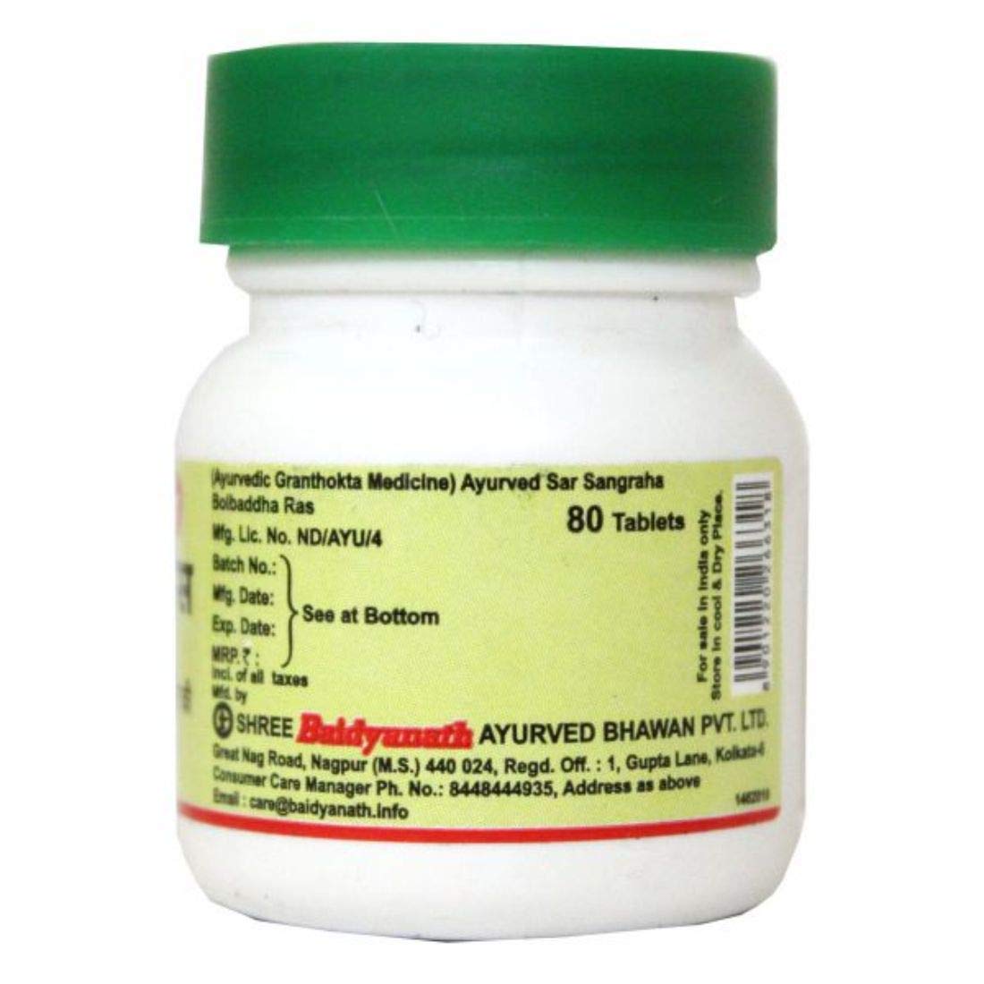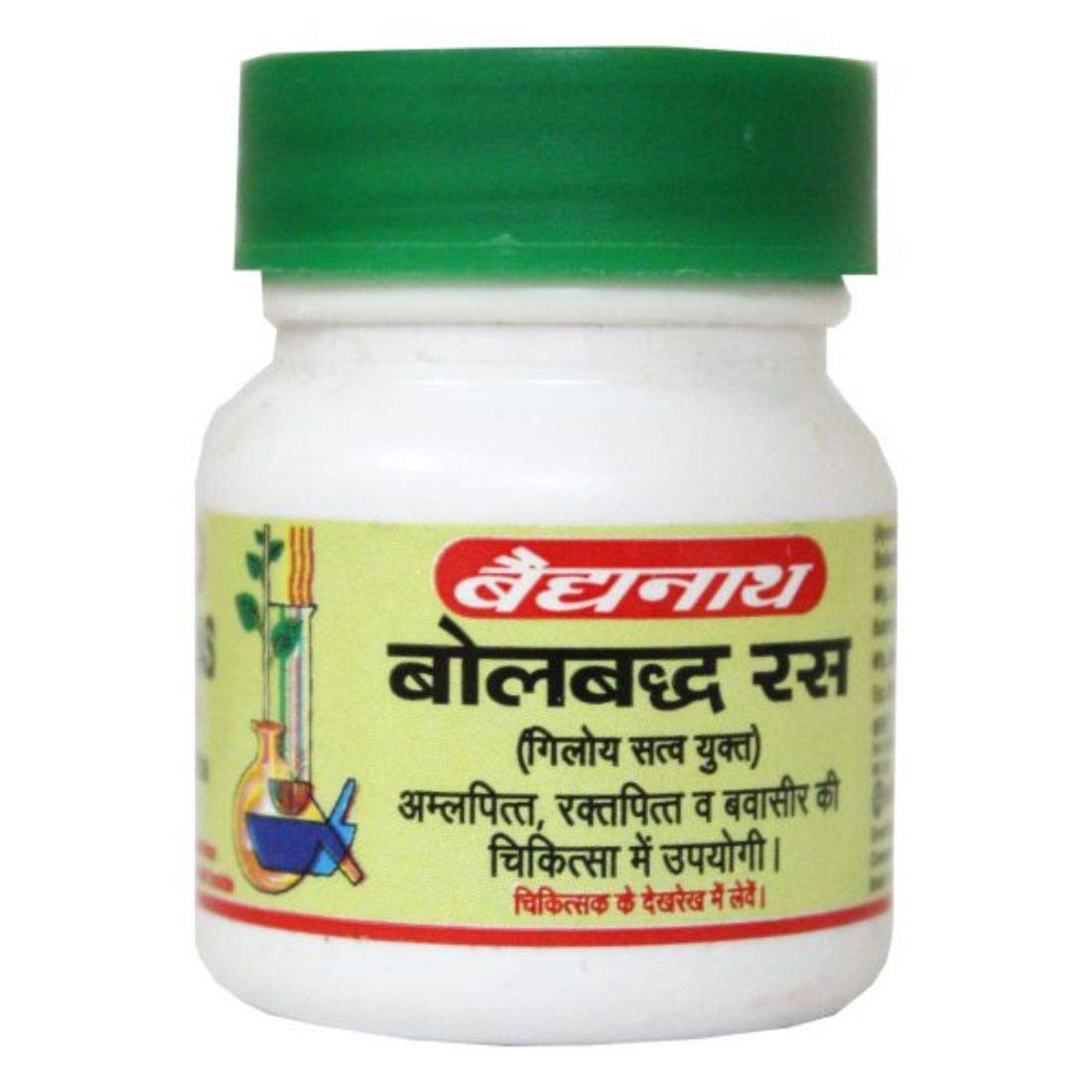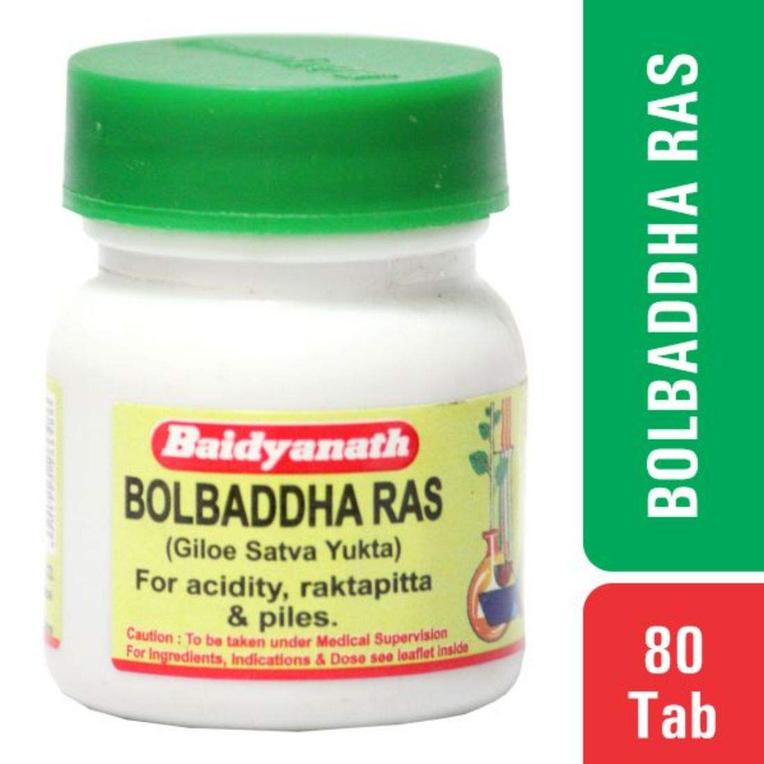 Baidyanath Bolbaddha Ras is an classical ayurvedic formulation in tablet form. Used as alterative haemostatic and astringent. Bolbaddha Ras is indicated in bleeding piles rakta pitta etc.