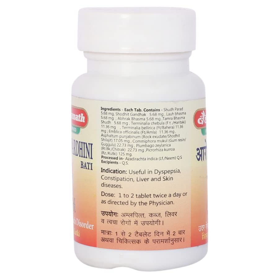 Baidyanath Jhansi Arogyawardhini Bati Tablet is advantageous for keeping the body's immune system strong. It contains chitrak a substance. Shilajit which has anti-inflammatory qualities May helps to postpone ageing and lessens inflammation.