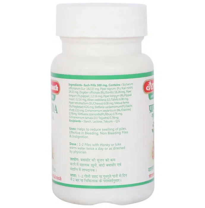 Baidyanath Jhansi Pranda Gutika TabletsIngredients:TrikatuChavyaTallispatraChaturjatPipalmoolKhus GudHow to use:As suggested by the expert.Legal Disclaimer: Statements regarding dietary supplements have not been evaluated by the FDA.Note: Product images are for illustrative purposes only. Images/packaging/ labels may vary from time to time due to changes made by the manufacturer's manufacturing batch and location. The product description is for infor