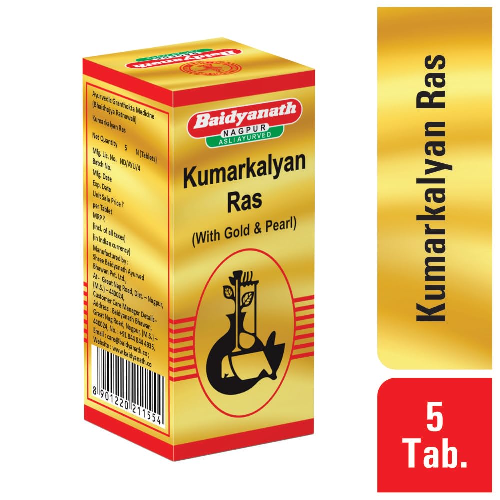 Baidyanath Kumar Kalyan Ras is a classical Ayurvedic formulation traditionally prepared to support the overall well-being of children. This supplement is crafted with carefully selected ingredients that are known in Ayurveda for their beneficial properties. It is designed to help maintain vitality and stamina in children and is also suitable for adults when taken as directed. The formulation is especially indicated for maintaining the health of the liver lungs and stomach making it a versatile supplement for holistic wellness.The recommended dosage for children is ½ to 1 tablet with honey while adults can take 1 tablet with honey or as advised by a physician.
