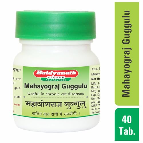 Baidyanath Mahayograj Guggulu is a classical Ayurvedic herbomineral formulation that has been used for the management of Chronic vat diseases. Fortified with Swarna bhasma hence more potent for joint pain. Mahayograj guggulu is indicated in chronic vat diseases gout pain in ligaments etc. To be taken under medical supervision. Importance of Swarna Bhasma (Gold): Boost immunity. Gold Salts often arrest the progression of the disease in involved joints at least temporarily. Prevent involvement of unaffected joints improves grip strength and decreases the erythrocyte sedimentation rate (ESR) Ref: The Pharmacological basis of therapeutics- GOODMAN GILLMAN.