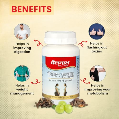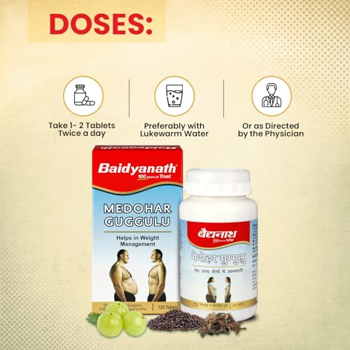 Baidyanath Medohar Guggulu Tablets is a natural and trusted solution for those on a journey towards healthy weight management. Enriched with a powerful blend of Guggulu Chitrakmool and Nagarmotha carefully crafted to support your wellness goals. Our Medohar Guggulu Tablets are formulated with Guggulu a revered resin in traditional Ayurvedic medicine which may help to maintain healthy cholesterol levels and support metabolic function. This key ingredient combined with Chitrakmool and Nagarmotha creates a synergistic effect that may help in promoting efficient digestion. These tablets are designed to be a safe and effective supplement for both men and women seeking natural weight management support. They work by assisting the body in processing excess fat making it easier to shed those extra pounds and achieve a healthier more balanced physique. With a heritage spanning over a century Baidyanath is a name you can trust for quality and authenticity in Ayurvedic wellness. Our Medohar Guggulu Tablets are a testament to our commitment to providing time-tested natural solutions that align with your health and well-being goals.
