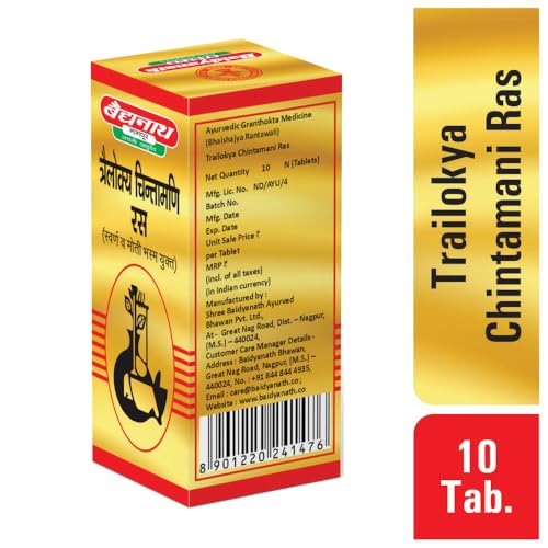 Baidyanath Trailokya Chintamani Ras with Gold & Moti Bhasma -10 Tablets