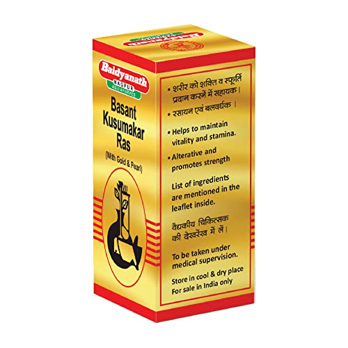 Baidyanath Basant Kusumakar Ras is a herbal formulation useful to boost immunity maintain vitality and stamina Alternative and tonic. Basant Kusumakar Ras is Useful to treat debility occurring due to increased level of blood sugar. It also helps to strengthen saptadhatu. Equally effective in both Men and Women.