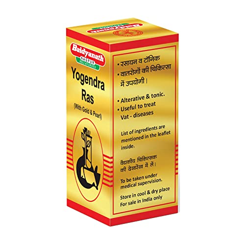 Yogendra Ras is enriched with pure gold and pearl having nutritive alterative cardiotonic and stimulant activity. Yogendra Ras is also used in the treatment of neuro-muscular conditions. It has natural herbs pure minerals and metals that can treat a number of pitta disorders.