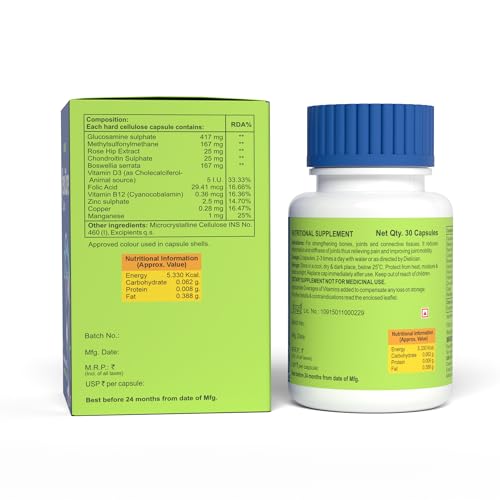 Bakson Flexicare Capsules For Strengthening Bones, Joints & Connective Tissues | Reduces Inflammation, Joint Stiffness, Improves Joint Mobility & Relieves Pain For Men & Women (30 Capsules)