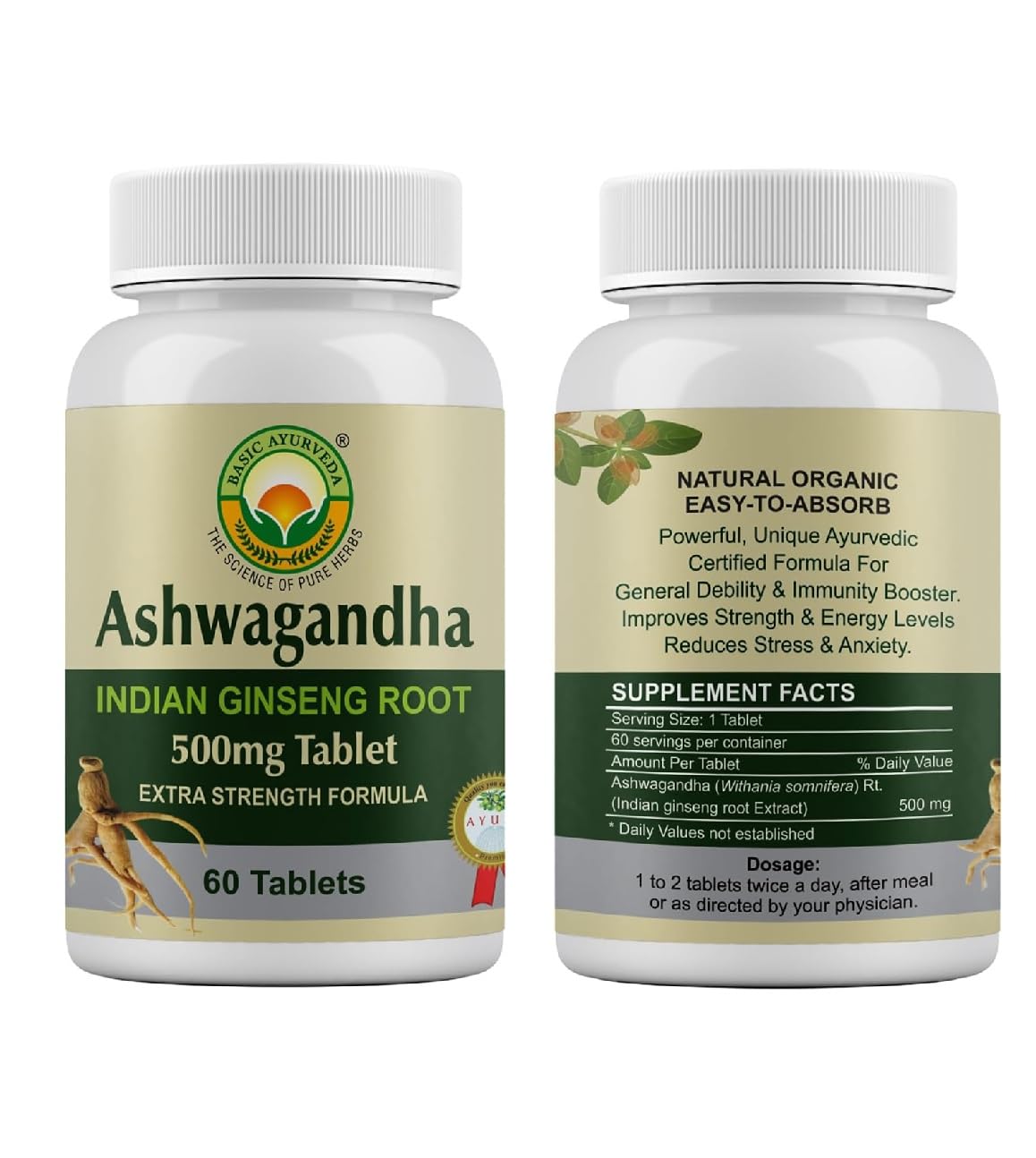 Basic Ayurveda Ashwagandha Wellness Tablets – 60 Tablets | Natural Stress Relief, Energy & Immunity Booster | Ayurvedic Tonic for Mind-Body Rejuvenation | Adaptogenic Support