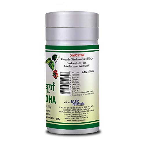 BASIC AYURVEDA Ashwagandha Root Churna 100 Gram | | Ayurvedic Supplements For Boosts Immunity | A Powerful Blend Of Natural Ingredients Extra Strength Formula