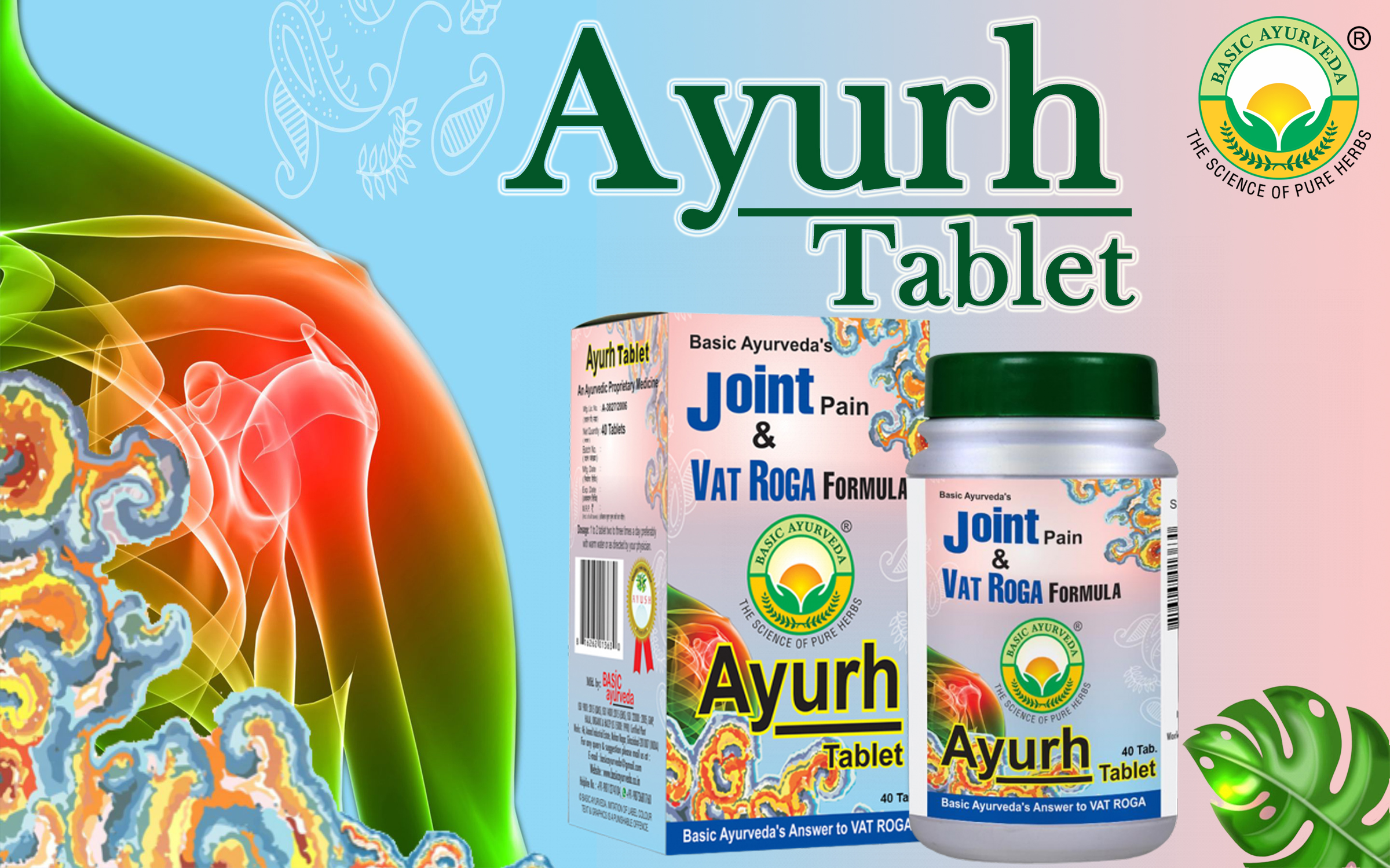 • Basic Ayurveda's Ayurh tablet is a joint pain tablet made up of natural herbs. It provides ease from joint pain lumbago gout swelling in the leg and knee and any type of muscular pain. Ayurh tablets improve the amount of synovial fluid between the joints.
