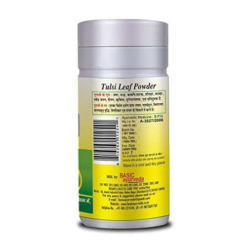 • Authentic Manufacturing Basic Ayurveda Tusi Churna is made in GMP an FSSAI-approved facility that adheres to the highest quality standards. Since this product is made with organically sourced ingredients it is vegetarian and keto-friendly.