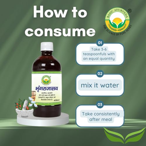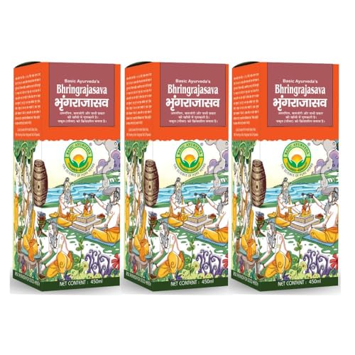 HomeHealth & PersonalDiet & NutritionHealth SupplementsBasic Ayurveda Bhringrajasava Certified Organic 100% Natural & Pure Herbs | Ayurvedic Supplements Especially Related To Hair, Liver, Cough Health And Overall Well-Being- 450 Ml (Pack Of 3)