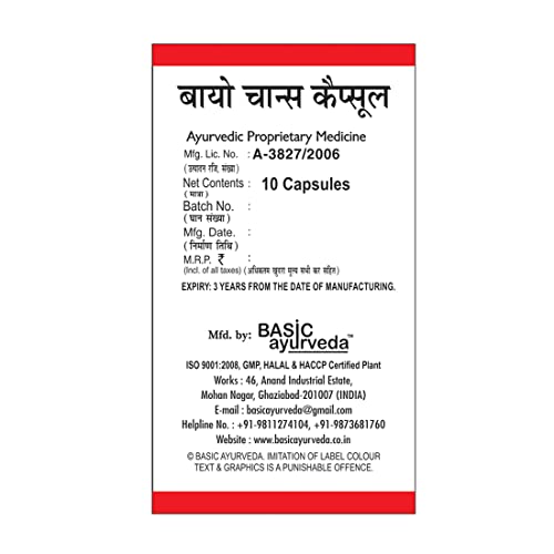 • Basic Ayurveda Bio Chance Capsule with all the goodness of nature comes in a 10 Capsules pack and is a certified product that is safe to consume daily.