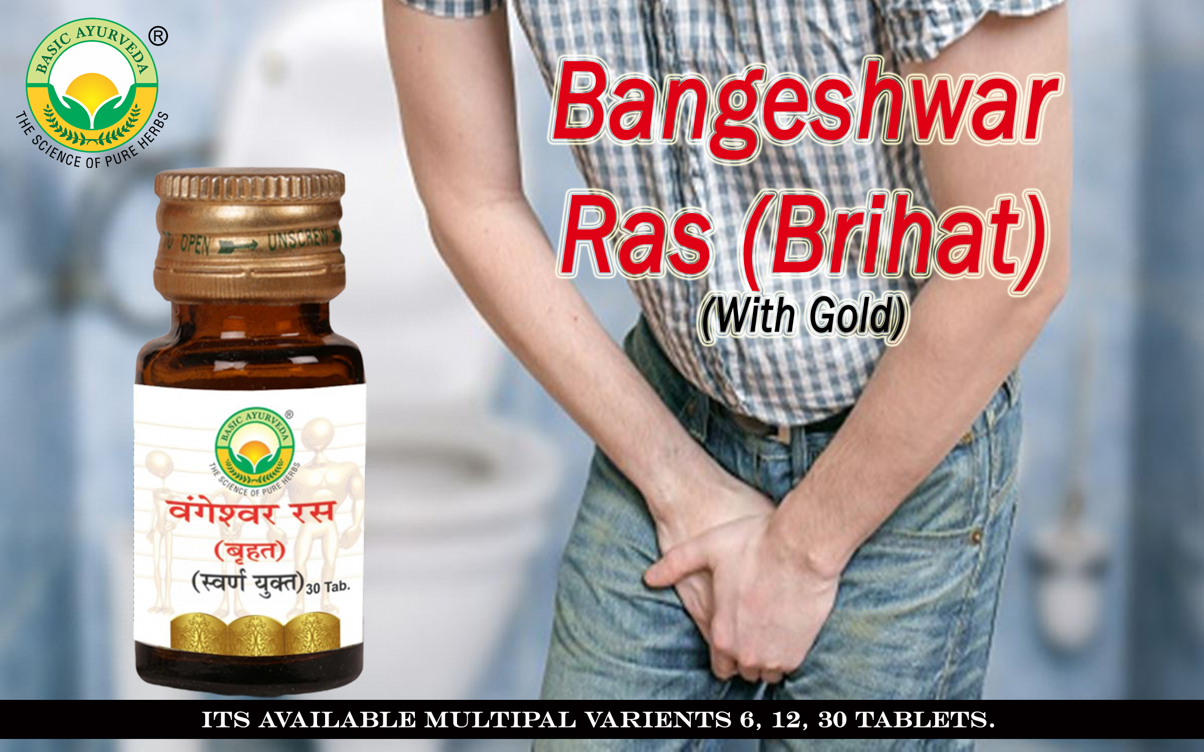 • Bangeshwar Ras Brihat with gold is an Ayurvedic hero- mineral formulation in tablet form it is specially designed to be used in the problems of frequent urination.