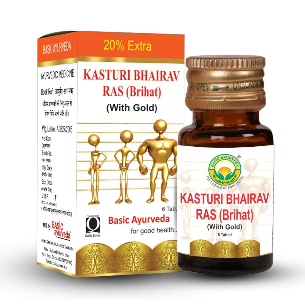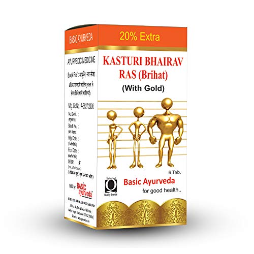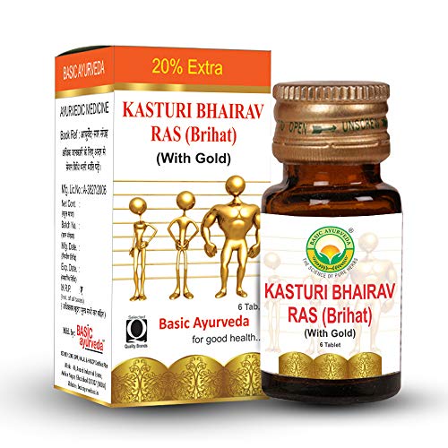 Basic Ayurveda Brihat Kasturi Bhairav Ras with Gold 6 Tablets | Support for Fever & Respiratory Wellness